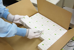 すべての検査にパスしたら、ようやく商品の箱詰出荷作業です。重量を確認しながら、段ボールに丁寧に箱詰をしていきます。